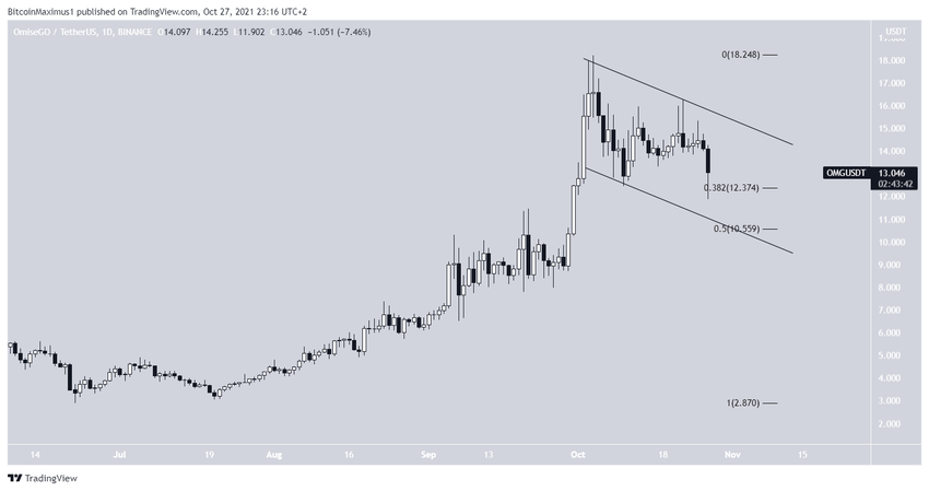 OMG обновил исторический максимум 4 октября и с тех пор снижается. Цена движется в пределах нисходящего параллельного канала.
