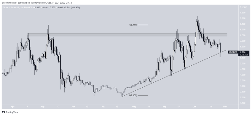 Токен движется вдоль восходящец линии поддержки. Однако он спустился ниже горизонтальной области $7,50.
