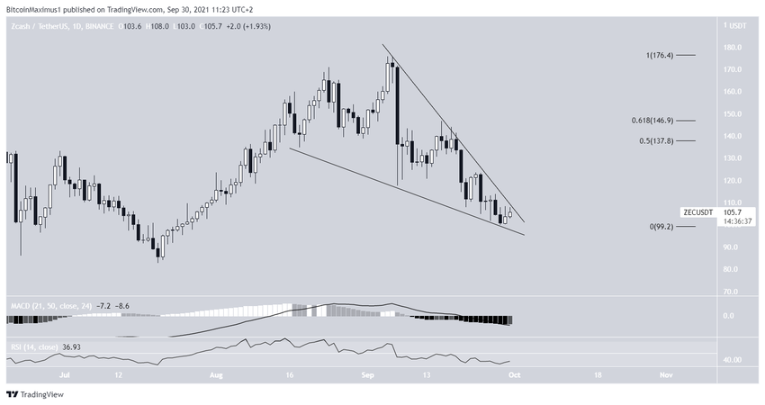 ZEC движется внутри нисходящего клина с 29 сентября. Клина считается бычьим паттерном.