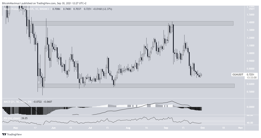 MACD и RSI падают, а это значит, что у OGN все шансы вернуться в область $0,58.