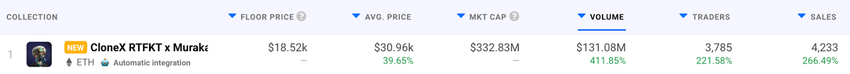 За последние семь дней опубликованная коллекция аватарок с дизайном Такаши Мураками принесла оборот более $131 млн. Коллекция привлекла около 4000 уникальных трейдеров, и в настоящее время средняя цена продажи составляет $30 960.