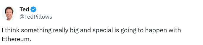 «Я думаю, что с Ethereum произойдет что-то действительно важное и особенное», — написал он в своем X.