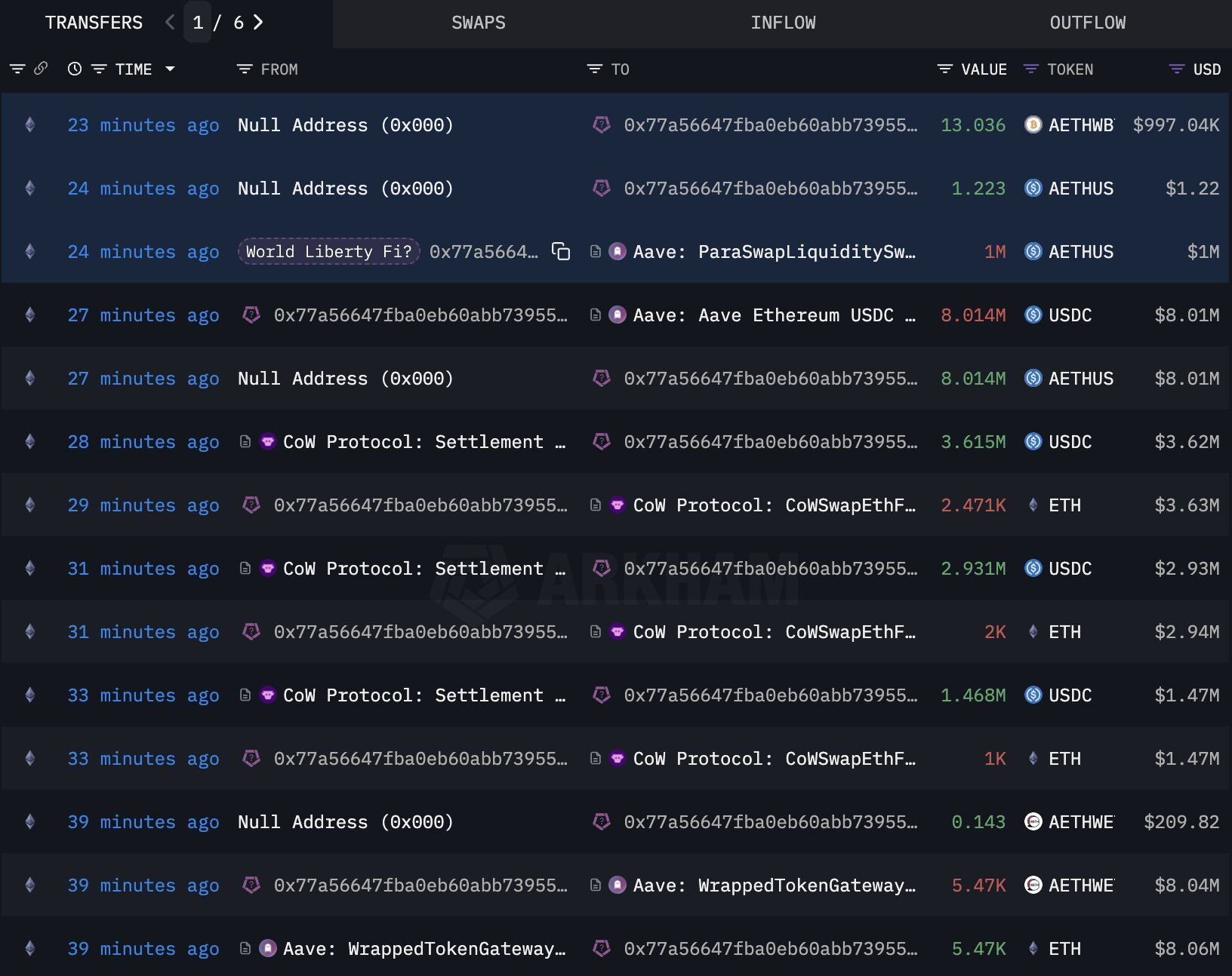 По данным Arkham, один из связанных с World Liberty Financial кошельков начал продавать криптовалюту Ethereum. Его владельцы успели избавиться как минимум от 5 471 ETH на $8,01 млн. Монеты выставили на продажу по курсу $1 465 за Эфир.