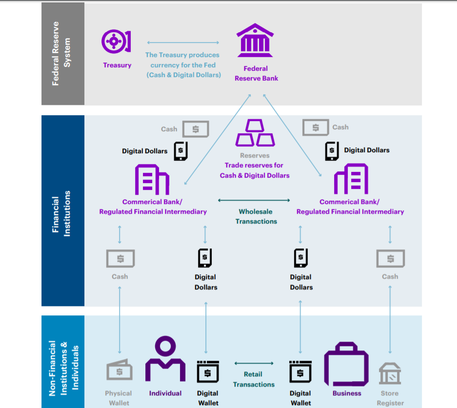 - После выпуска криптовалюты Центробанком, активы планируют передать коммерческим банкам. Они займутся распространением криптодоллара.