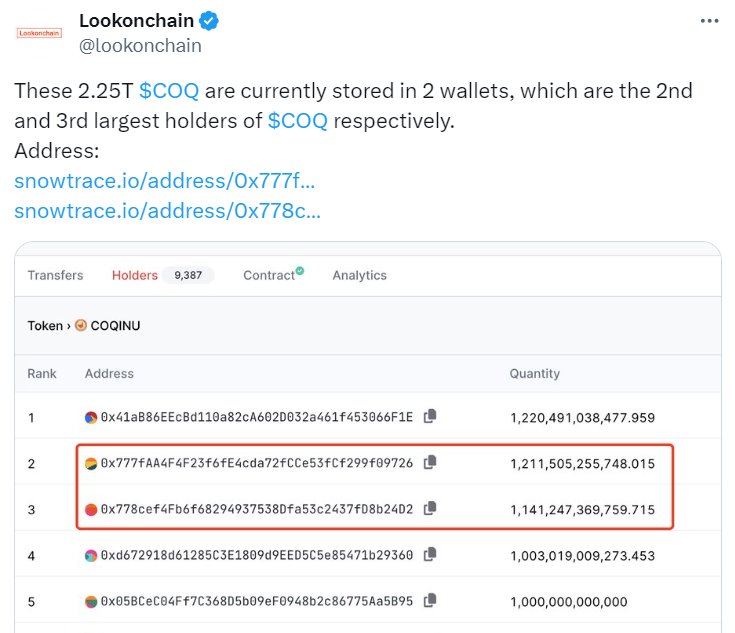 - Купил за AVAX 2,25 трлн токенов COQ.