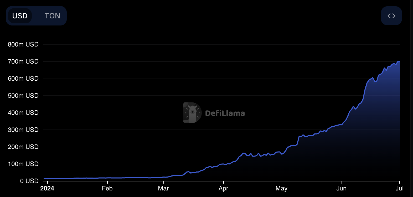 По данным DefiLlama, 30 июня TVL экосистемы TON пробила рекордную отметку в $700 млн.