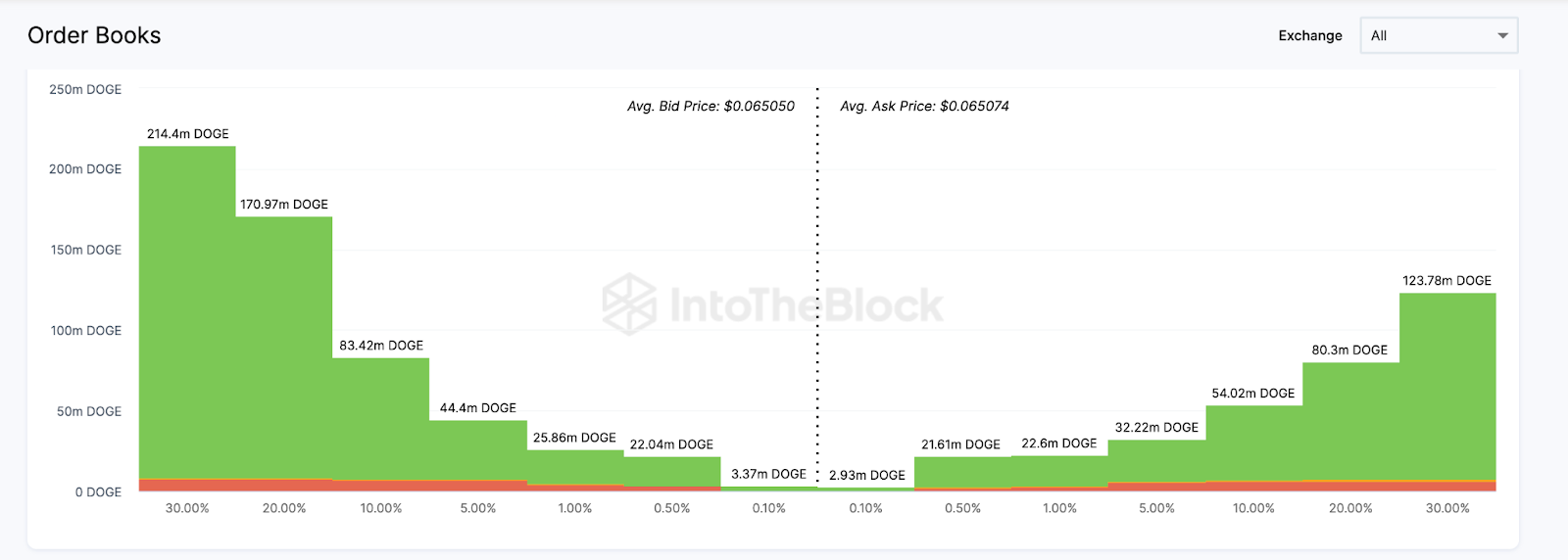 Участники рынка ожидаемо решили воспользоваться рыночной эйфорией и зафиксировать прибыль. Согласно данным о глубине биржевого рынка, трейдеры открыли ордера на продажу 563 млн и на покупку 335 млн DOGE.