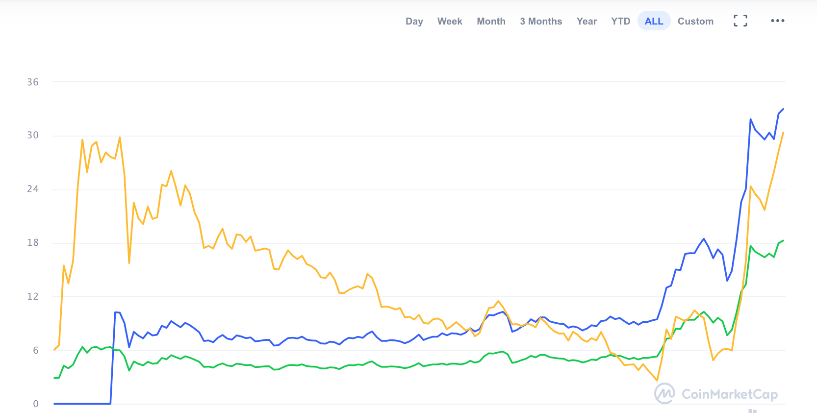 Между тем, Polkadot продолжает укреплять свои позиции по всем направлениям. Примечательно, что компания, возглавляемая соучредителями, в том числе соучредителем Ethereum Гэвином Вудом, была запущена только в мае 2020 года. К ноябрю она поднялась уже на шестое место по рыночной капитализации.С декабря курс токена DOT вырос более чем в три раза.