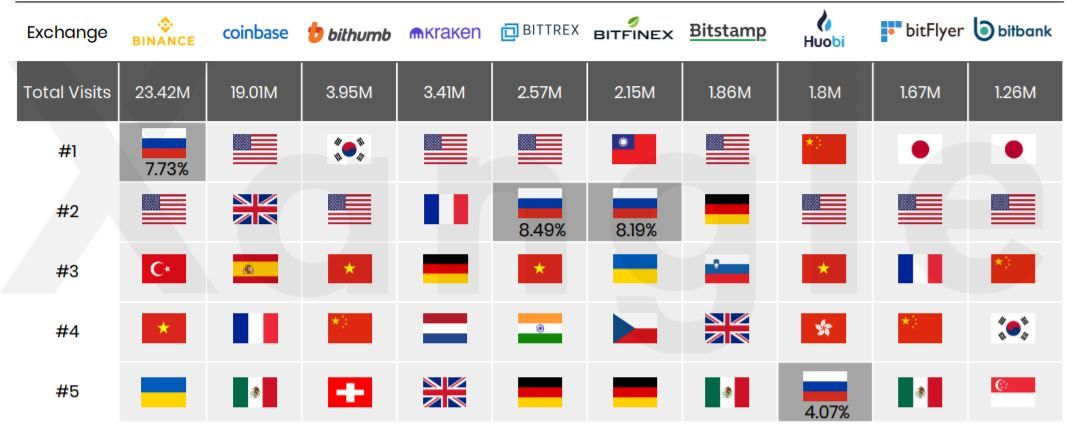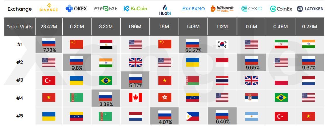 Самыми популярными биржами среди россиян, по данным Xangle Research, оказались Bittrex, Bitfinex и Binance.