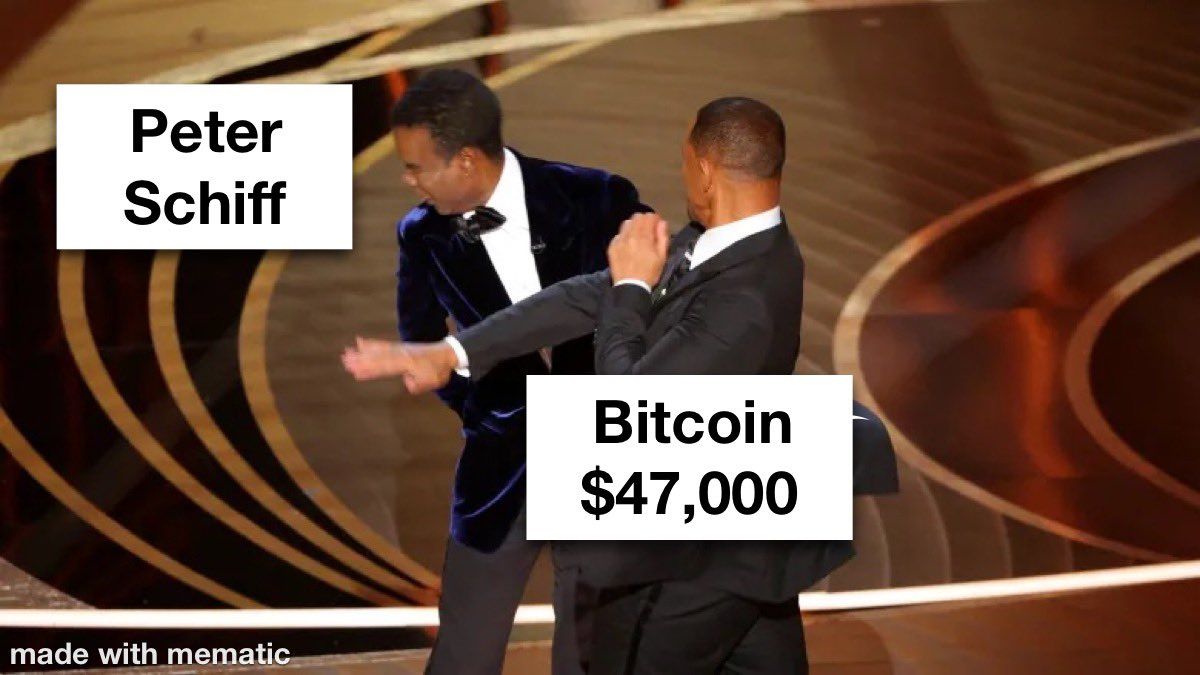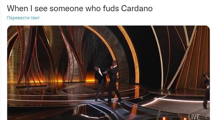 Пока одни участники криптосообщества зарабатывают на поступке Уилла Смита, другие постят шутки. Пощечина актера стала поводом для рождения нового мема, который лег в основу многих постов. Вот лишь несколько примеров: