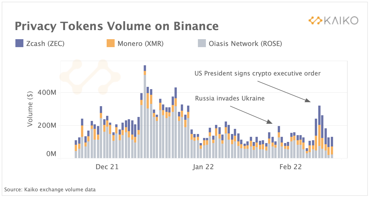 Всплеск произошел после того, как Байден подписал указ, требующий от группы ведомств США оценивать преимущества и риски криптовалют. С момента подписания ZEC и XRM выросли на 51% и 42% соответственно. Впрочем, в Kaiko сомневаются, что криптовалюту будут использовать для обхода санкций. Всплеск активности, скорее, вызван спекуляциями, считают аналитики.