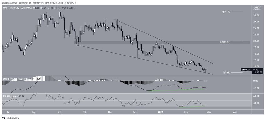 Uniswap (UNI) пробил долгосрочную поддержку 19 января, но теперь подает ряд бычьих сигналов внутри бычьего паттерна.