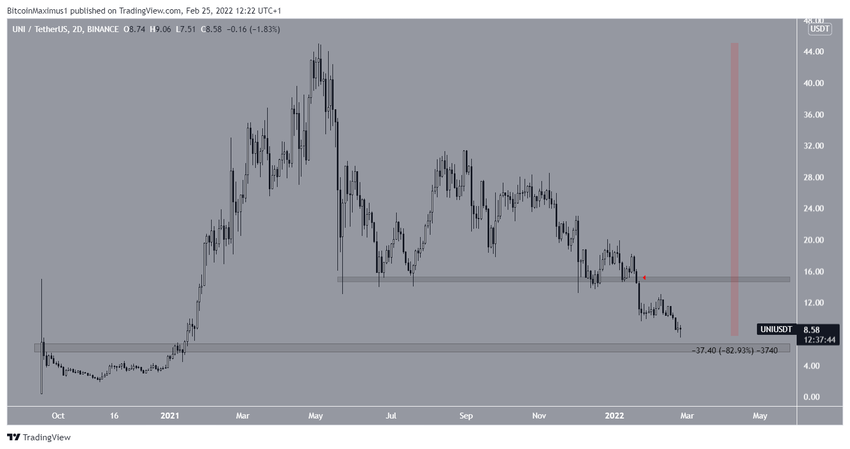 SponsoredК 22 февраля UNI просел до минимума на $7.51, что ознаменовало собой просадку цены на 83% от рекордного максимума.