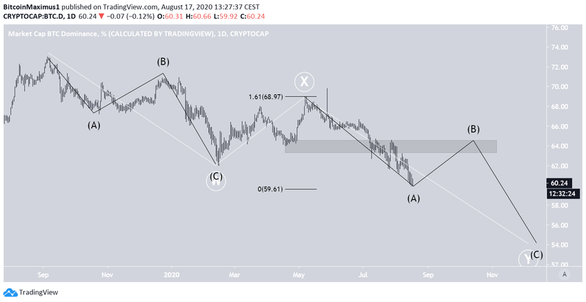 Уровень доминирования, возможно, завершает коррекцию W-X-Y, начатую в сентябре 2019 года. Если так, то сейчас индикатор находится на стадии волны Y, которая реализуется в форме A-B-C.