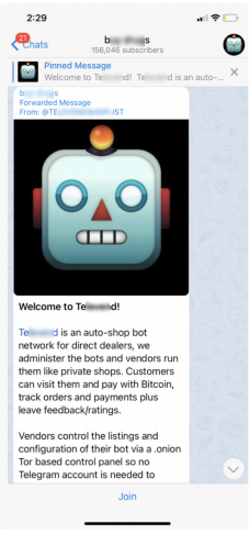Покупатели запрещенных препаратов получают доступ к группе бота в Telegram, где находят каталог поставщиков с разбивкой по регионам и продуктам. Также эксперты утверждают, что боты взимают комиссию (1-4%) в зависимости от размера операций. Например, при продажах до $50 000 бот взимает 4%, а в случае преодоления порога в $100 000 — 1%.