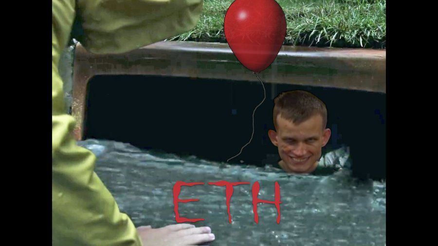 Также во вторник участники криптосообщества не обошли стороной Ethereum. Напомним, в последнее время криптовалюту часто критикуют. Например, криптограф Адам Бэк, которого многие считают создателем биткоина – Сатоши Накамото – видит в проекте признаки схемы Понци. Чтобы проиллюстрировать, предположительно, коварные планы соучредителя Ethereum Виталика Бутерина, пользователи сети представили его в роли Пеннивайза – главного антагониста произведения Стивена Кинга «Оно».