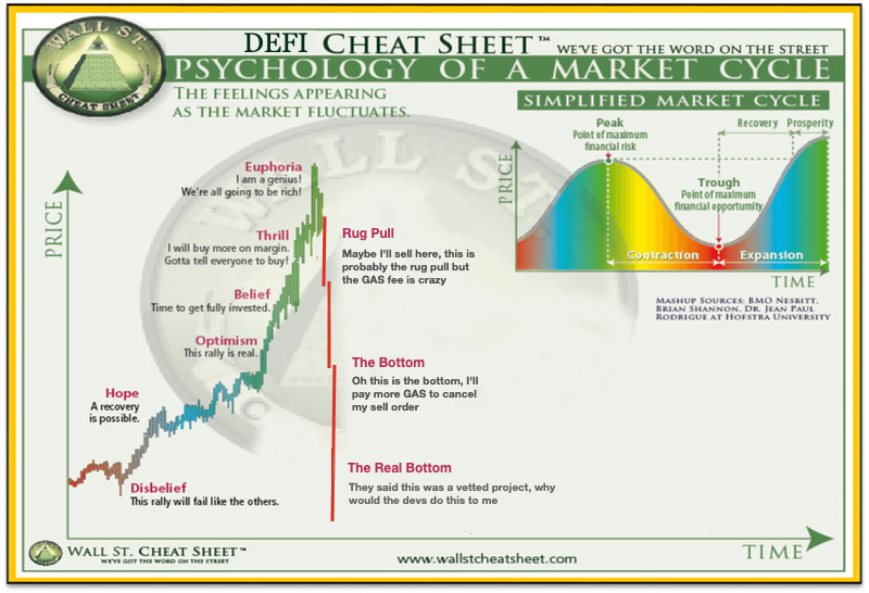Различия качества DeFi-проектов с традиционными криптостартапами, по мнению пользователей сети, можно отразить на популярном среди трейдеров графике рыночных циклов актива. В отличие от его традиционной версии, которая подразумевает повторный выход монеты в рост, в случае со многими токенами DeFi-проектов, может быть лишь одна вершина. Следом за ней наступает фаза падения, которая, в конечном итоге, приводит к полному обесцениванию криптовалюты.