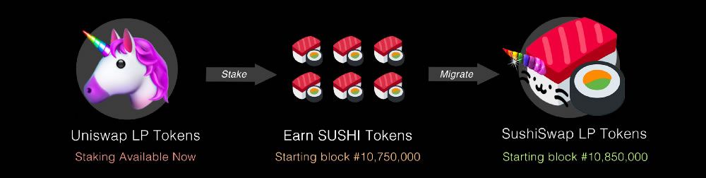«После завершения миграции преобразованная ликвидность будет питать первые наборы пулов SushiSwap и сразу же запустит работу протокола. Стейкерам не придется ничего делать, они просто будут получать вознаграждение за предоставленную ликвидность в токенах SUSHI».