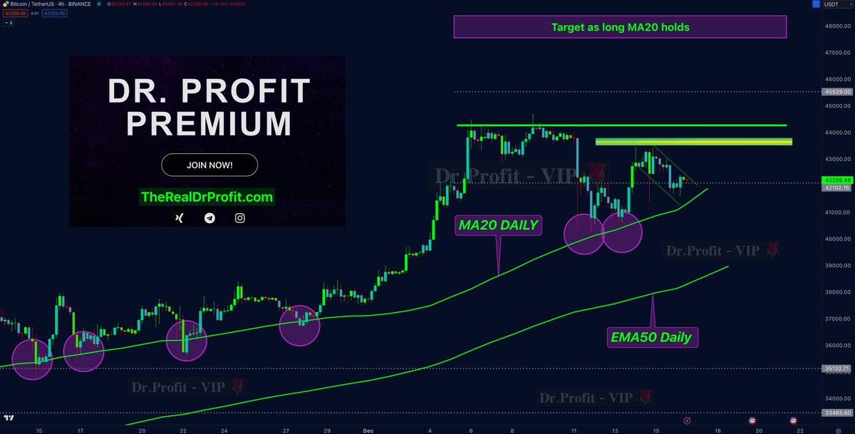 Трейдер Doctor Profit, в свою очередь, обратил внимание на отскок BTC от скользящей средней MA20, которая отражает средний курс актива за 20 дней. Он отметил, что монета неоднократно отталкивалась от MA20 на протяжении 45 дней. Удержание уровня, по его мнению, открывает перед монетой путь к $48 тыс. Ближайший пул ликвидности, который может стать промежуточной целью для BTC, по подсчетам аналитика находится на уровне $43 600.