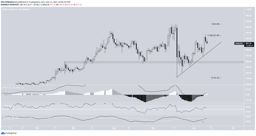 Сейчас KSM движется вдоль восходящей линии поддержки. Тренд можно считать бычьим, пока цена находится выше этой линии.