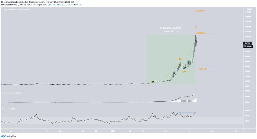 Начиная с 20, января, токен XVS выросли на 2 673%, и вошел в топ-80 по рыночной капитализации. XVS достиг исторического максимума на уровне $102,94 19 февраля.