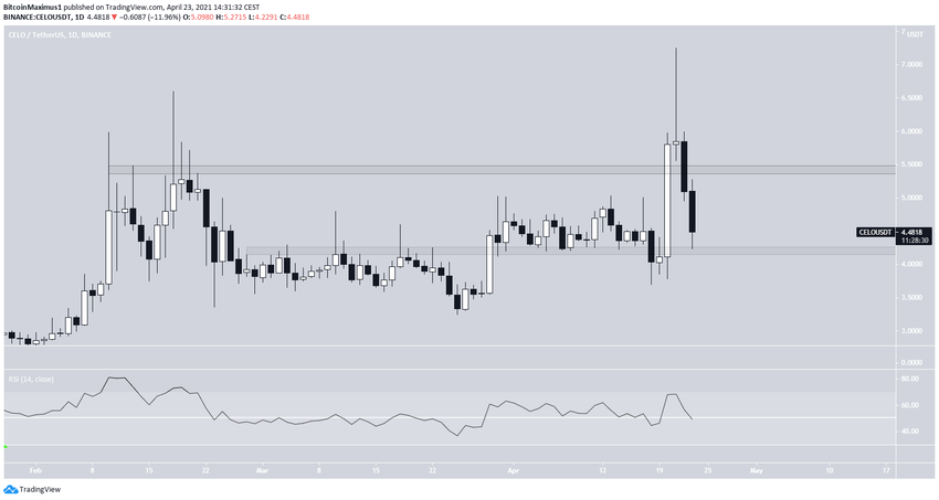 В настоящее время CELO торгуется чуть выше области $4,20 доллара, которую он протестировал в качестве поддержки.