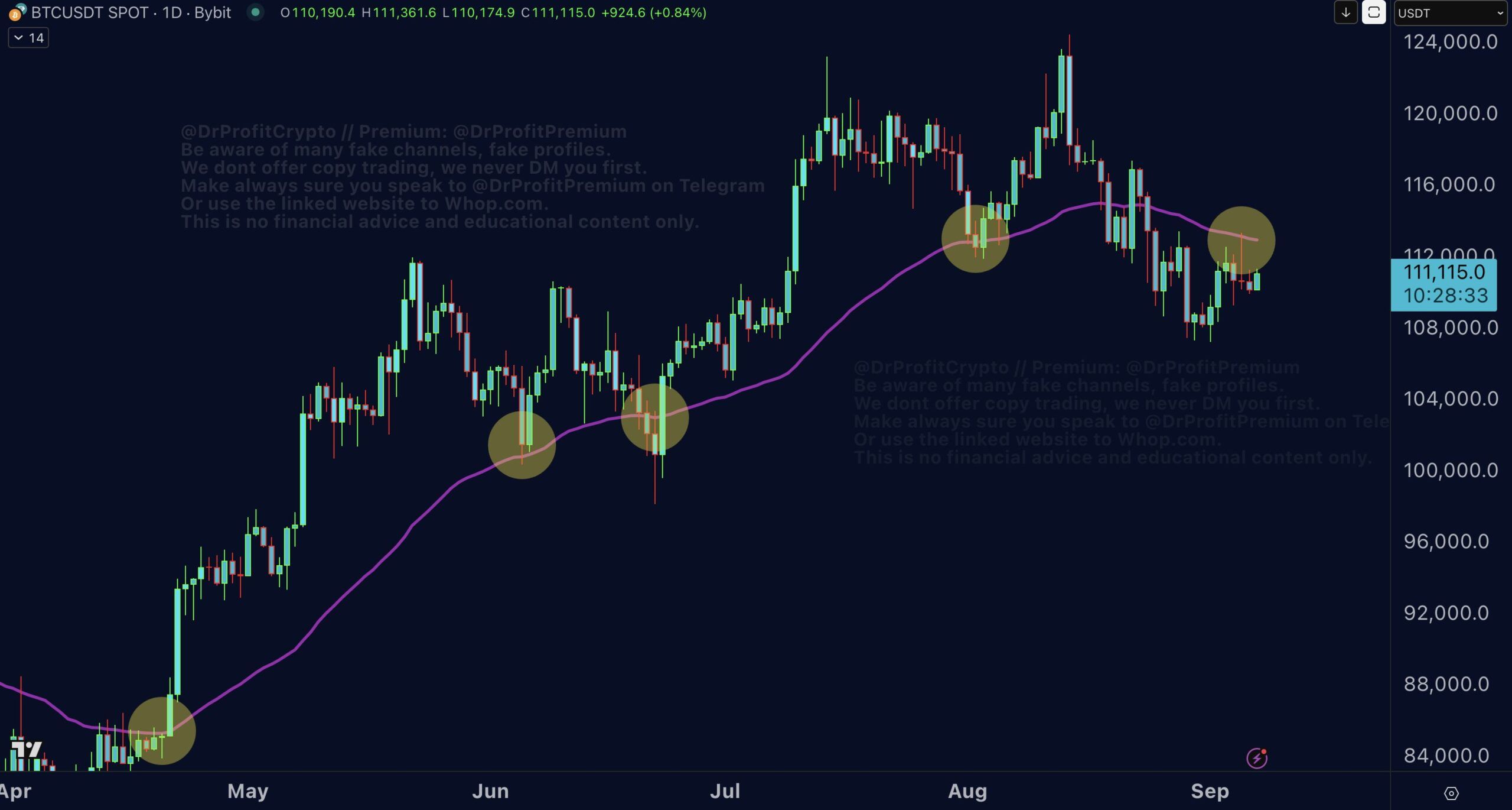 Аналитик Doctor Profit не поменял свой предыдущий прогноз. Он считает, что в сентябре криптовалюту ждет падение до уровней близ $90 000. Он обратил внимание на потерю курсом криптовалюты «золотой линии». Под термином аналитик имеет в виду 50-дневную скользящую среднюю (MA50).