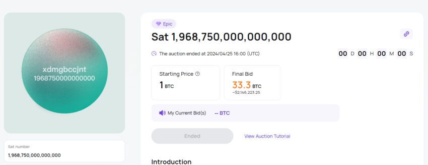25 апреля состоялся аукцион, на котором ViaBTC выставил первый сатоши из блока #840 000 на криптовалютной бирже CoinEX.