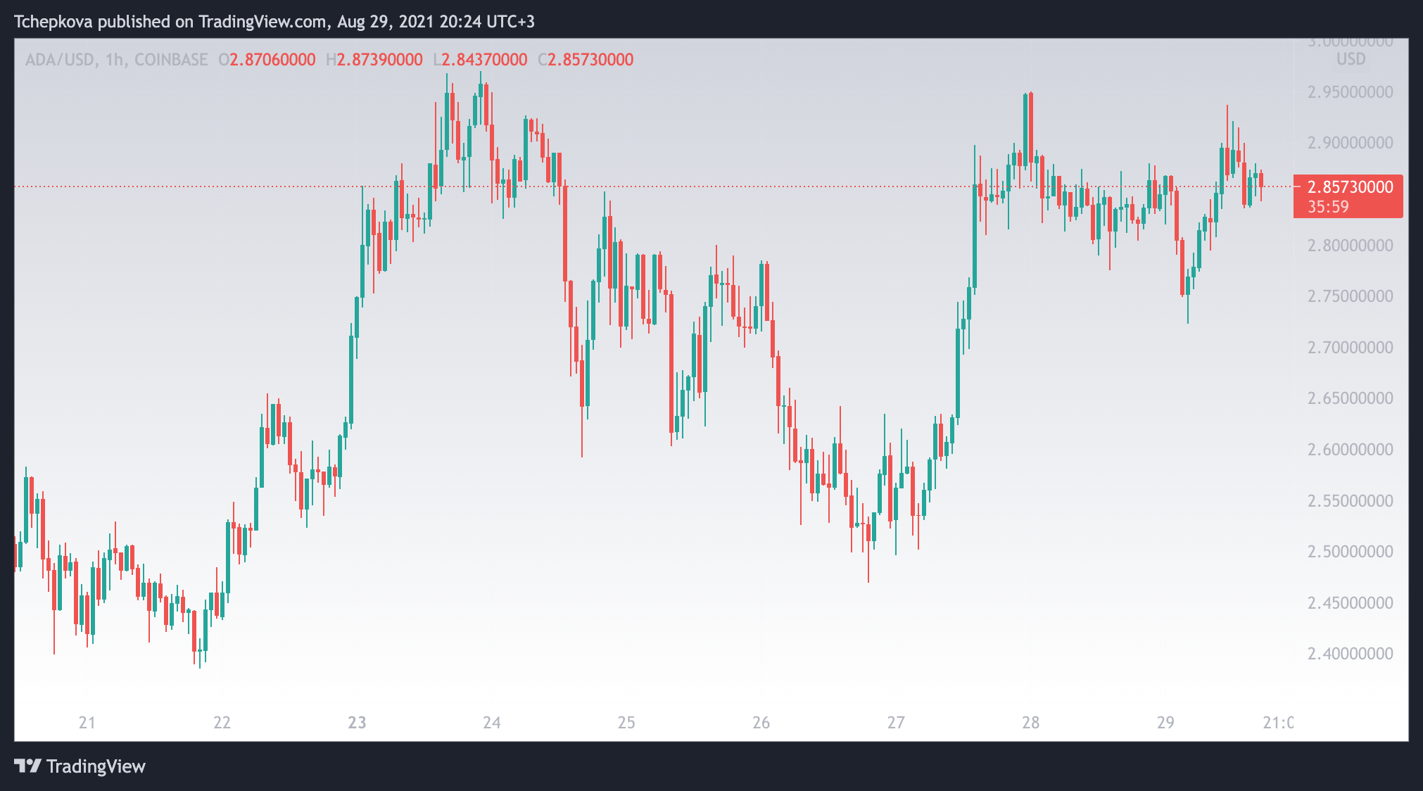 Cardano (ADA) за неделю подорожал более чем на 10% и стал лидером роста среди пятерки крупнейших криптовалют. Монета занимает третье место, а ее рыночная капитализация превышает $5,55 млрд. Монета на короткое время опускалась ниже отметки $2,5, однако падение оказалось недолгим. Сейчас ADA торгуется на уровне $2,85. Недельный максимум зафиксирован 23 августа на уровне $2,97. Ранее редакция BeInCrypto писала, почему ADA стал любимцем Уолл-стрит.