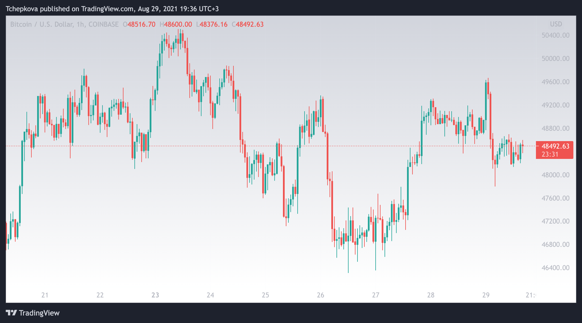 Неделя оказалась неоднозначной для биткоина. Пробившись выше ключевой отметки $50 000, BTC быстро сдал позиции и в четверг, 26 августа, протестировал локальное дно на уровне $46 315. С тех пор биткоину удалось частично отыграть потери, однако он так и не смог снова покорить $50 000. На момент написания материала, BTC торгуется на уровне 48 500. Ходят слухи, что во всем виноваты киты, устроившие дамп на рынке.