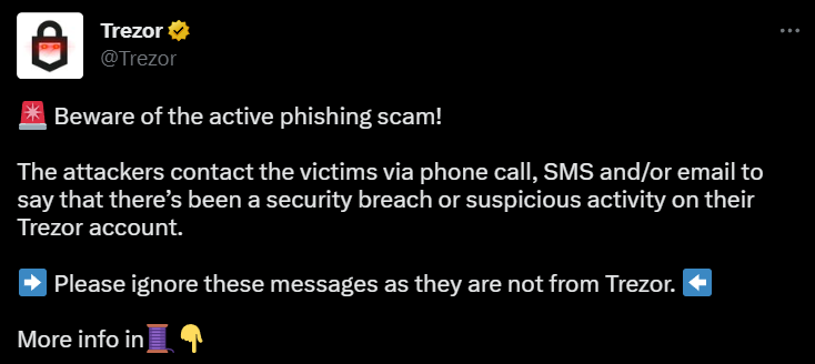 Пользователям аппаратных криптовалютных кошельков Trezor посоветовали быть начеку из-за бушующей фишинговой схемы
