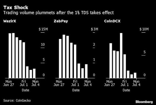 Налоговый режим в Индии обвалил торговые объемы на криптовалютных биржах, истребив всех высокочастотных трейдеров