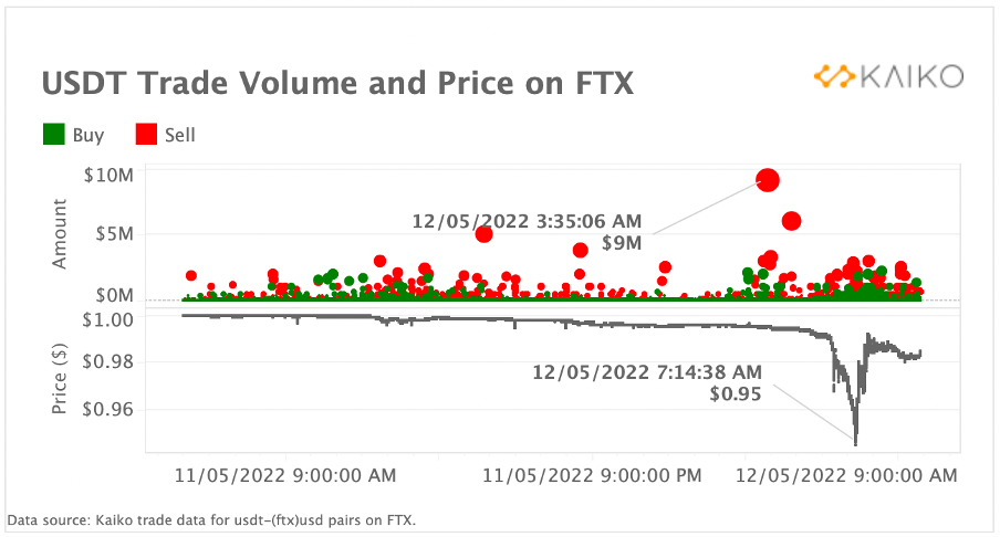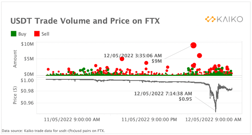 В середине мая аналитики Kaiko выяснили, что неизвестные пытались обрушить курс стейблкоина tether (USDT) на FTX, продавив его ниже $0,97. Исследователи выяснили, что из двенадцати крупных бирж, на которых размещена пара USDT/USD, только шесть обладали значительным объемом торгов для проведения атаки на стейблкоин. При этом в момент падения курса USDT именно рыночная доля FTX взлетела с 16% до 45%.