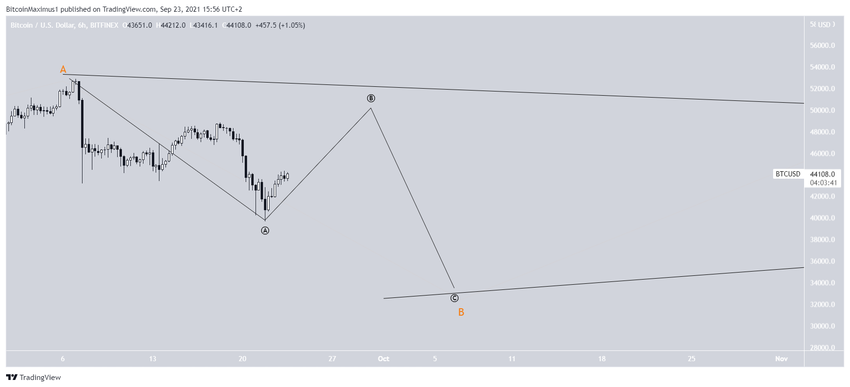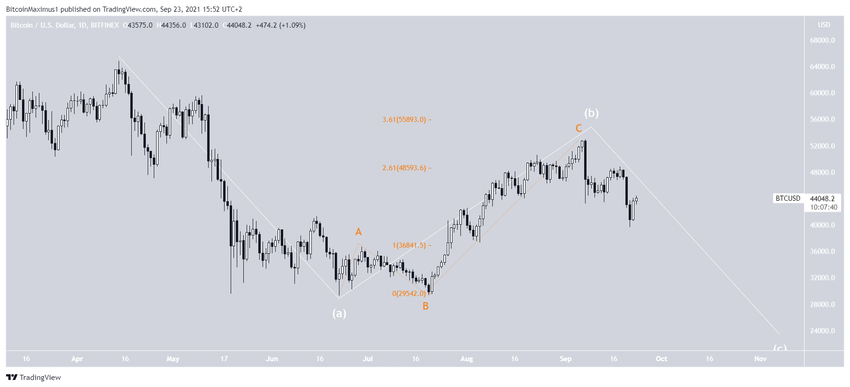 Впрочем, даже в случае реализации этого сценария, прежде чем биткоин начнет снижения, сначала он может запустить рост в направлении области $50 000.