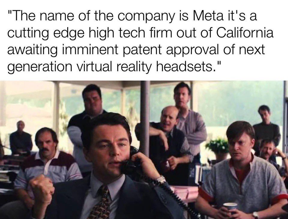 Sponsored SponsoredДругой пользователь сети в шутку сравнил попытки Meta продвинуть идеи, связанные с развитием метавселенной, с тем, как главный персонаж фильма «Волк с Уолл-стрит» Джордан Белфорт продает наивным инвесторам акции копеечных компаний, выдавая их за самые перспективные на рынке ценные бумаги.