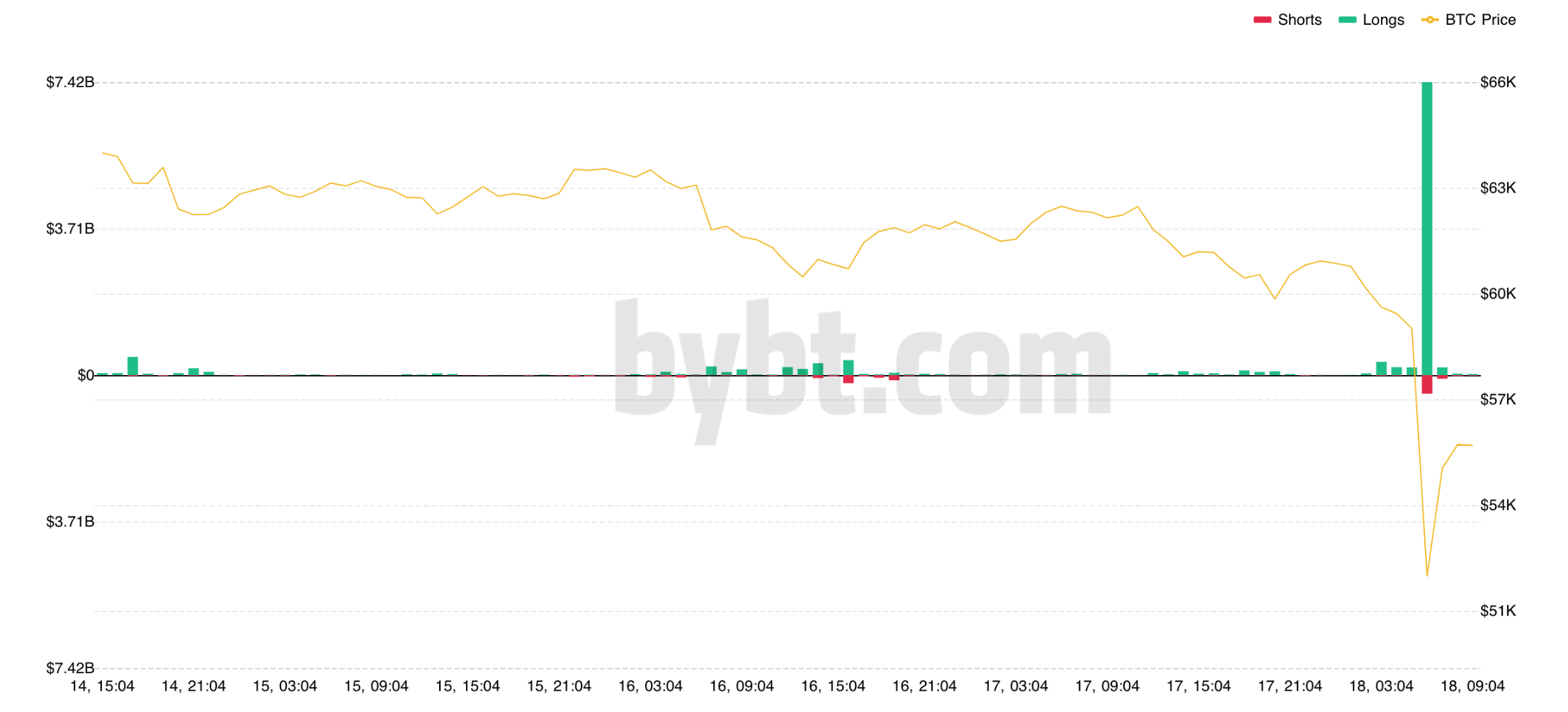 Предыдущая крупная ликвидация позиций на рынке произошла 15 марта 2021 года. Тогда флэш-крэш биткоина с $60 000 до $55 000 обошелся рынку в $2,4 млрд.