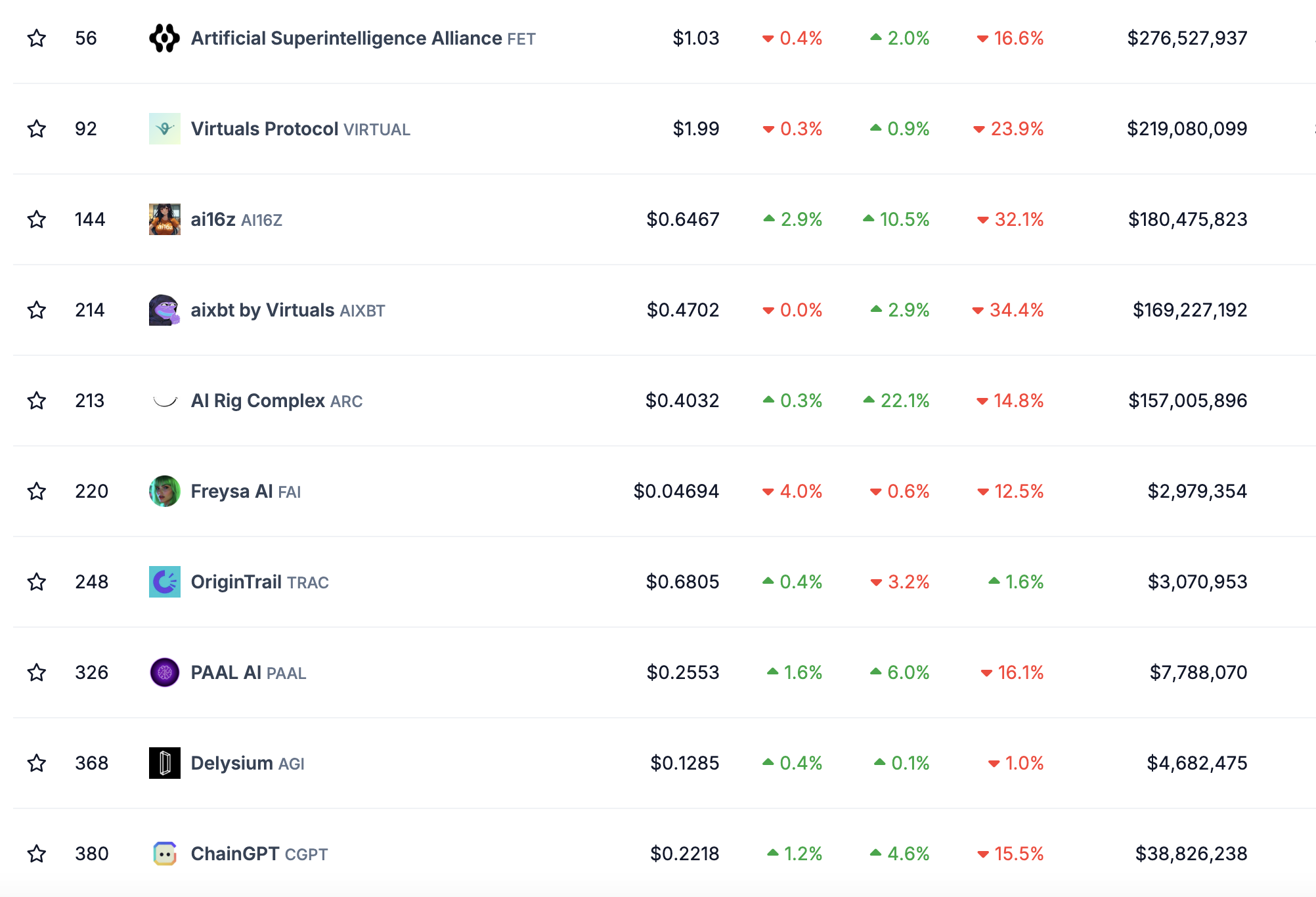 Среди крупнейших криптовалют в секторе наибольший суточный прирост показали AI Rig Complex (ARC) и ai16z (AI16Z) — их котировки выросли на 22% и 10% соответственно.