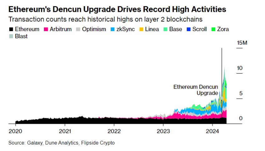 Благодаря Dencun такие решения, как Blast, Base и многие другие стали более конкурентноспособными. Снижение комиссионных сборов дало пользователям понять полезность и эффективность L2-блокчейнов.