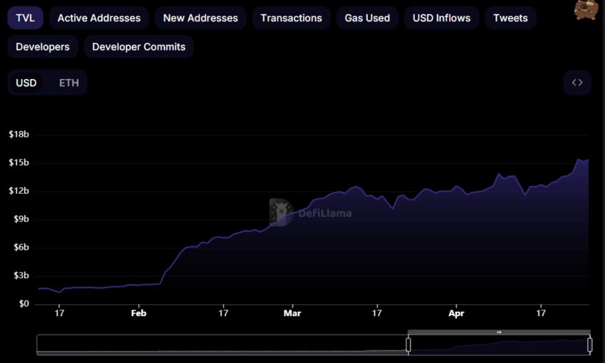Особый оптимизм в сторонников DeFi вселяют позитивные показатели новых проектов, появляющихся в секторе. Самый яркий пример — протокол рестейкинга EigenLayer, который запустили в начале февраля этого года.