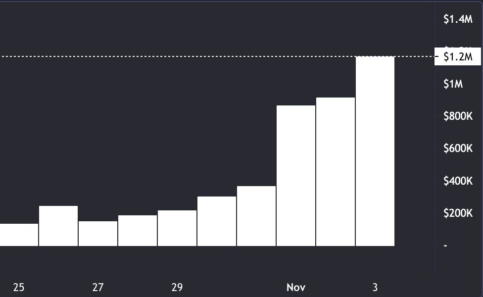 Выборы президента США увеличил объемы капитала, заложенного в рынках предсказаний. На момент написания материала торговые объемы Polymarket по вопросу переизбрания Трампа на второй срок подобрались к отметке в $6 млн.