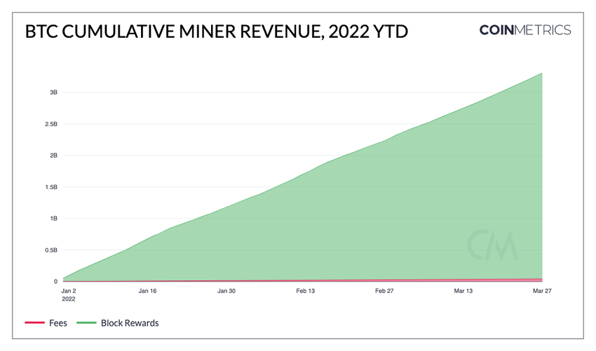 Доходы майнеров биткоина с начала 2022 года достигли отметки в $3 млрд, подавляющее большинство из которых пришло за счет майнинга блоков