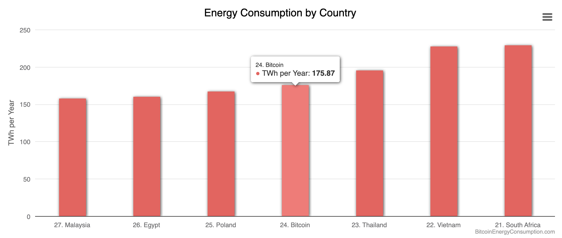 Цены на криптовалюты растут, вместе с ними растет и популярность майнинга. Однако добыча цифровых активов требует огромного количества электроэнергии. Энергопотребление биткоина уже превышает показатели некоторых крупных стран, таких как Польша, Тайланд и Малайзия. Растущий спрос на электроэнергию вызывает тревогу среди экологов и политиков, создавая вызовы для мировой энергетики.