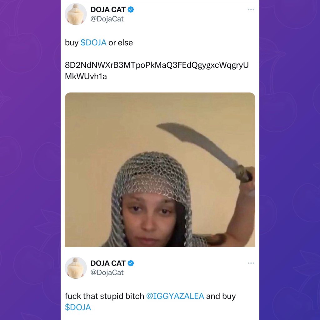 Впервые про взлом рэперши написало медиа про селебрити Daily Trends. В посвященном этому посте аккаунт также опубликовал видео самой Doja Cat, в котором она утверждает, что не имеет никакого отношения к уже удаленному твиту про токен.