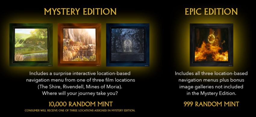 В Mystery Edition входят NFT-изображения Шира, Ривенделла и шахты Мории, а Epic Edition включает все три локации, а также другие уникальные изображения.