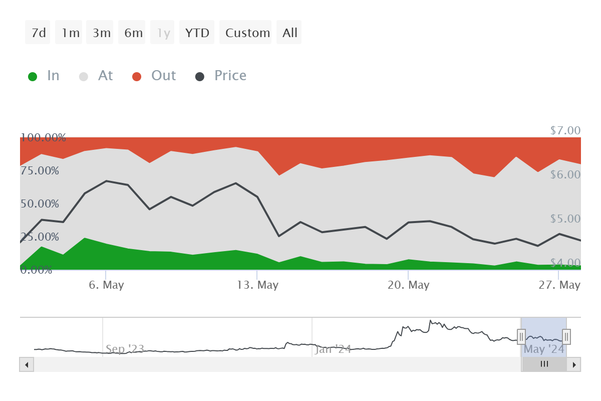 Монеты на сумму более $130 млн были куплены по цене от $4,38 до $4,95. Учитывая, что WLD сейчас торгуется в районе $4,91, прибыль не за горами. Хотя на данный момент альткоин склонен к консолидации, это не связано с продажами со стороны инвесторов.
