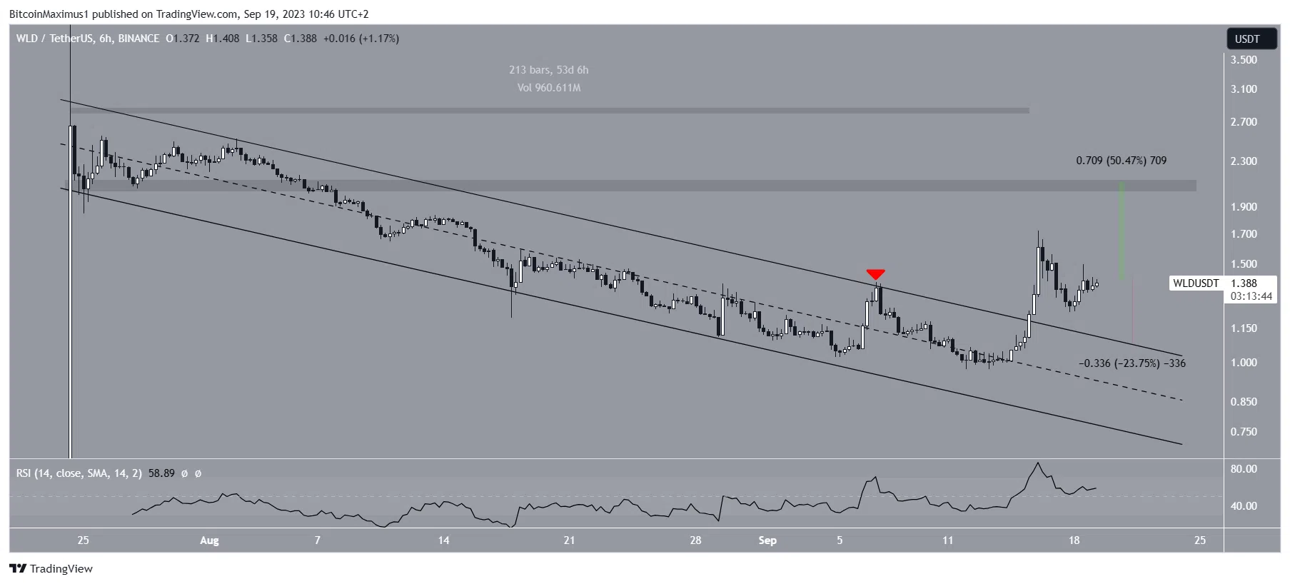 Оттолкнувшись от уровня поддержки 5 сентября, WLD частично восстановился, а затем прорвался выше верхней границы 52-дневного нисходящего параллельного канала, что свидетельствует о завершении коррекции.