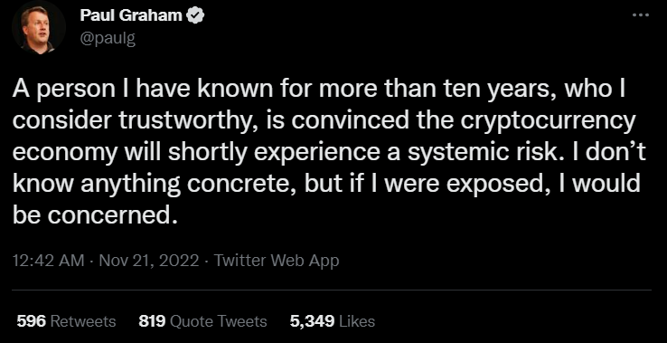 Один из основателей краудфандинговой площадки Y Combinator Пол Грэм предупредил о надвигающемся системном риске для всего крипторынка