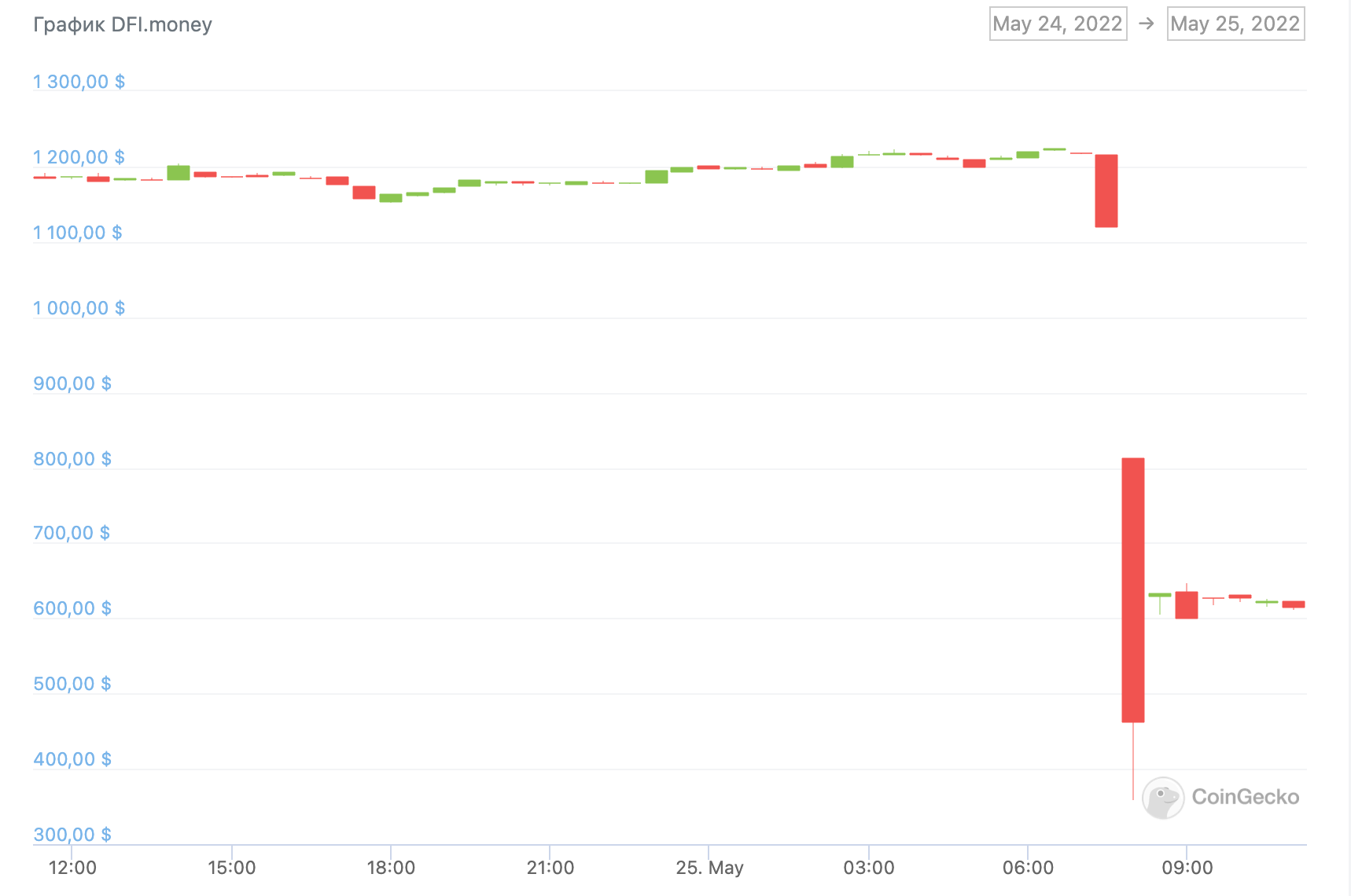 Токен DFI Money (YFII) упал ниже $400, за несколько часов подешевев на 70%. Причиной массовой распродажи стали слухи о том, что разработчики выводят деньги из проекта. На момент публикации токен восстановился до $618, частично сократив потери.