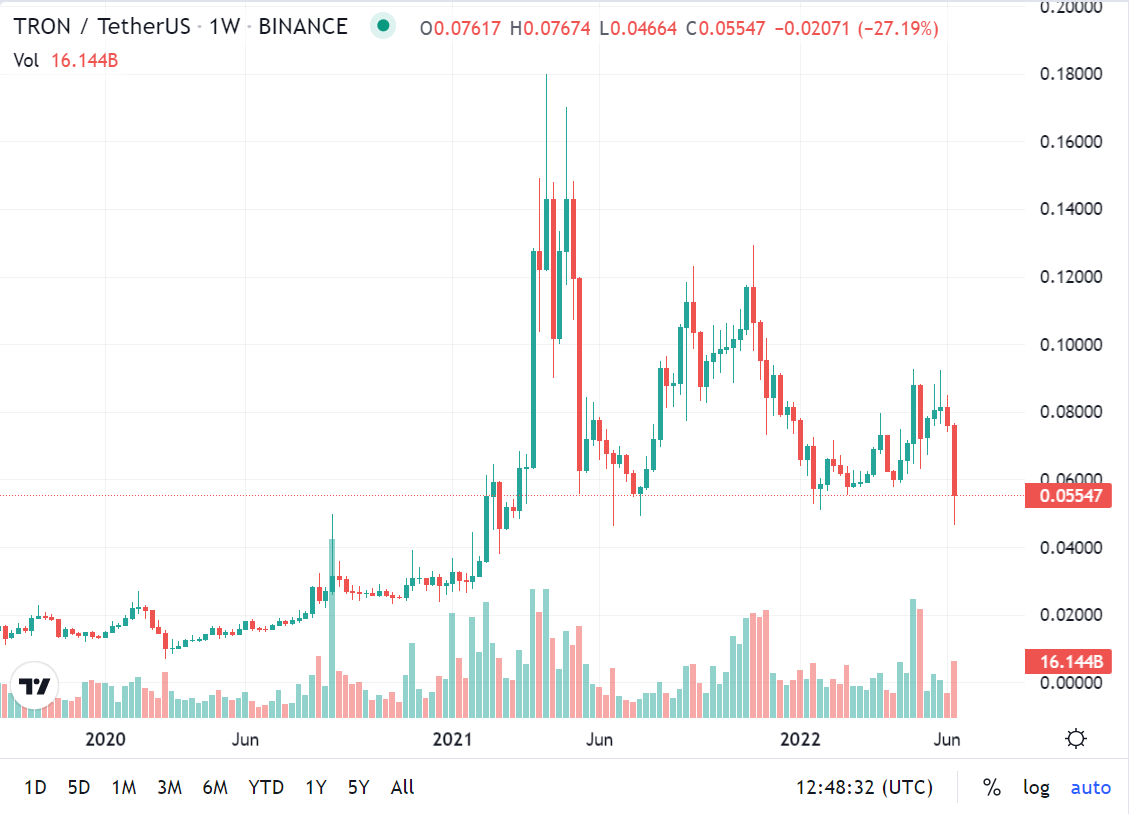 Tron имеет тенденцию на понижение, что, возможно, является результатом отмены привязки стейблкоина USDD, который получил избыточное обеспечение.