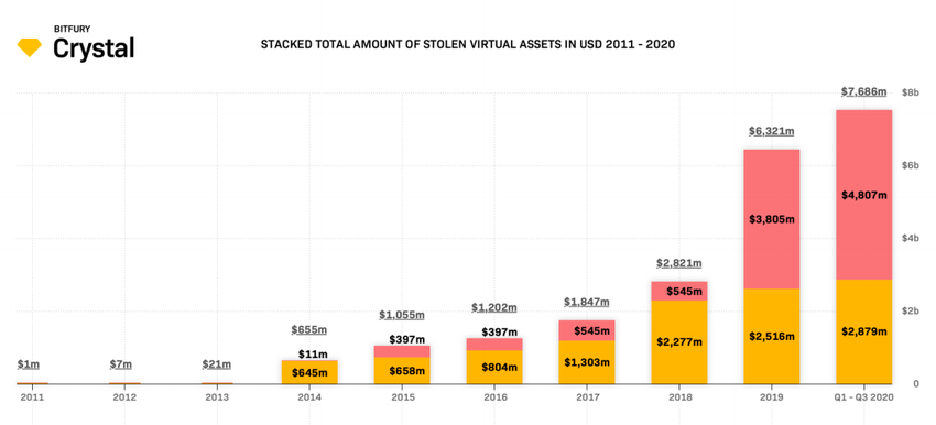 Как показали данные нового исследования, за период с 2011 года взломы и хакерские атаки обошлись криптоинвесторам в $7.69 млрд.